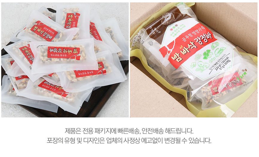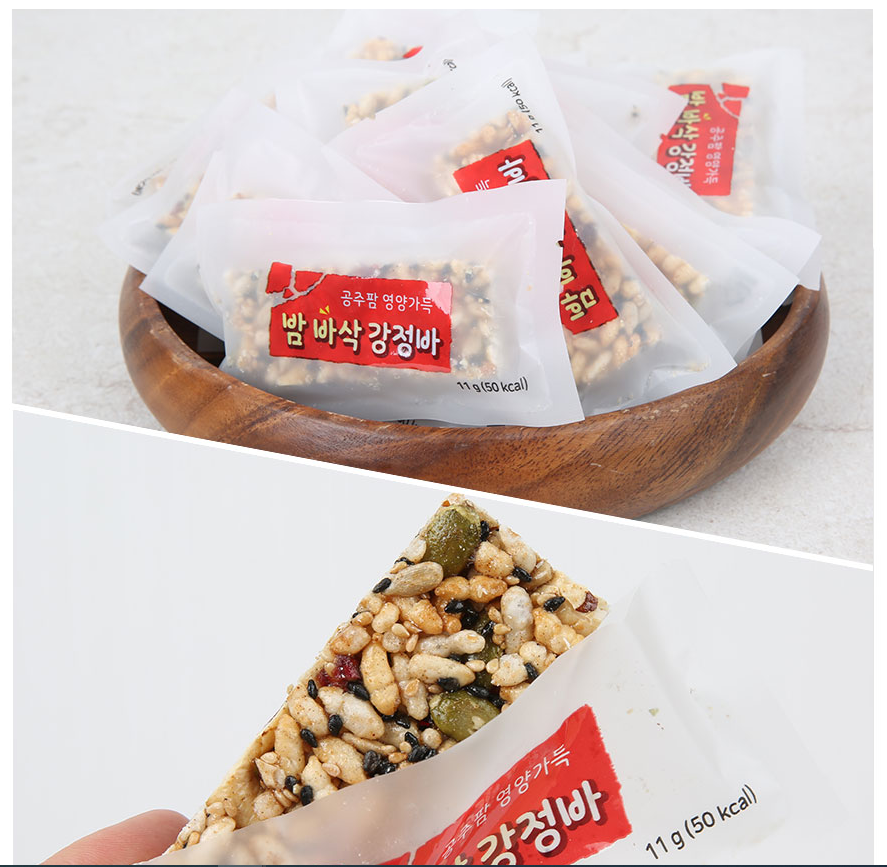 낱개포장되어 언제 어디서나 부드럽고 바삭한 식감으로 강정바를